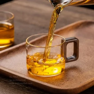 The Heat-Resistant Glass Tea Cup with Wooden Handle is a 120 mL borosilicate glass cup designed for tea, coffee, and other hot beverages. Its minimalist design features a smooth, round lip and a natural wooden handle for comfortable grip and aesthetic appeal.