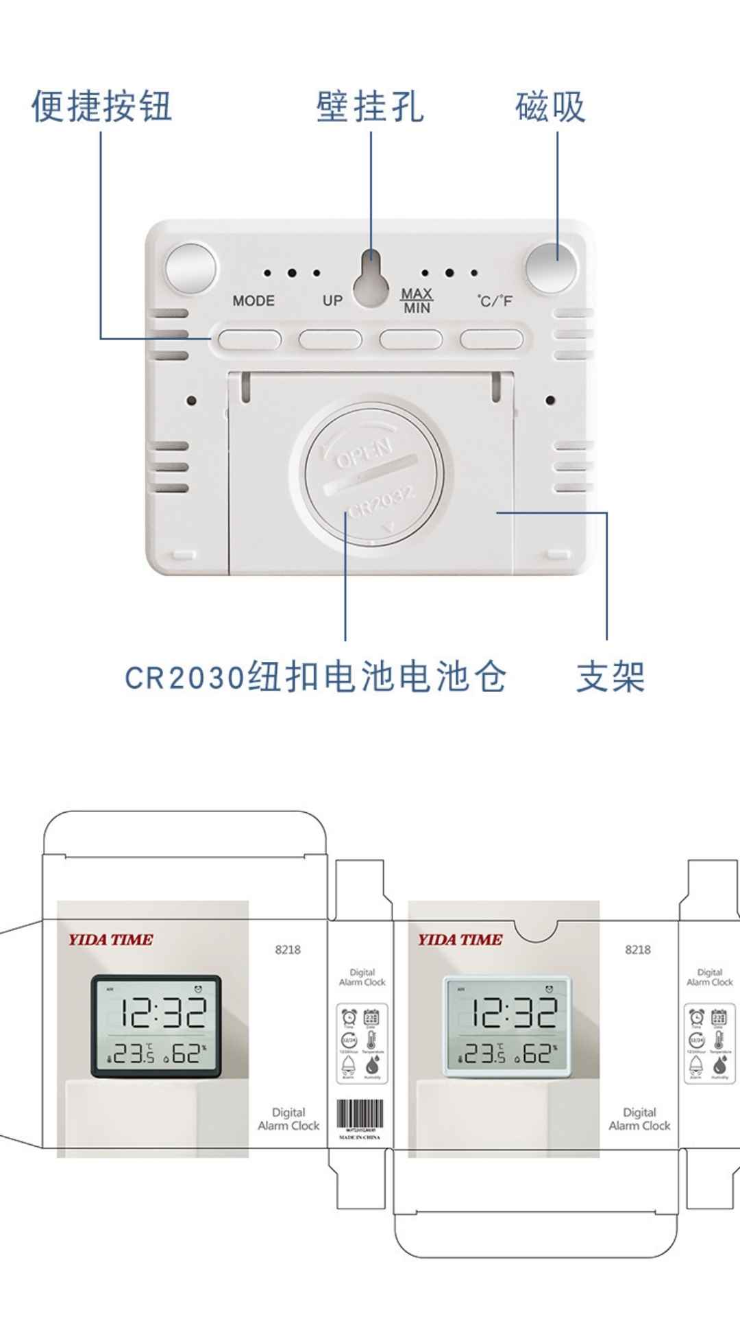 Monitor your environment with the Multi-Function Magnetic LCD Clock. This versatile digital clock clearly displays time, temperature, and humidity, and features a magnetic back for easy mounting, all backed by a 90-day replacement guarantee.