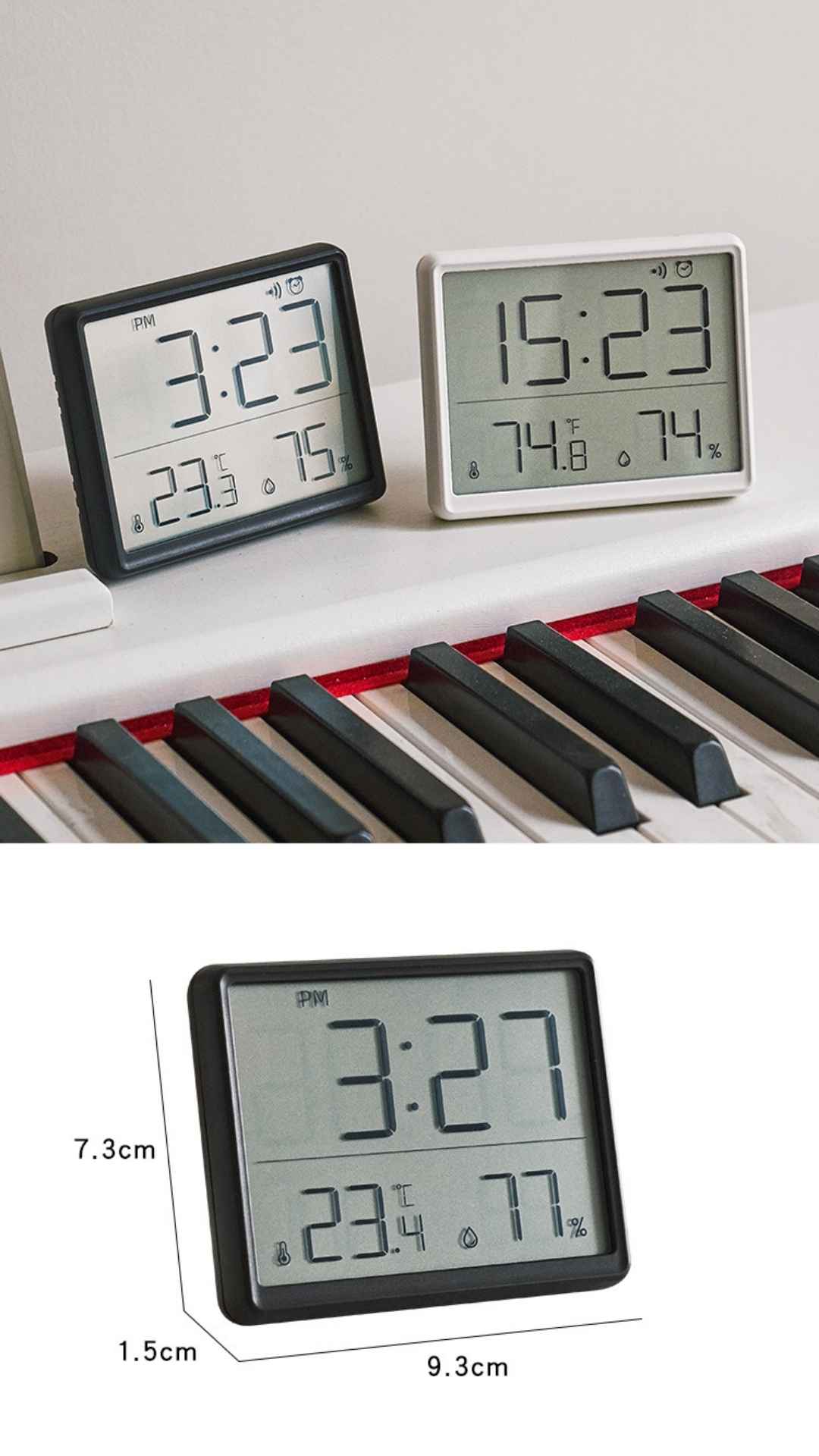 Monitor your environment with the Multi-Function Magnetic LCD Clock. This versatile digital clock clearly displays time, temperature, and humidity, and features a magnetic back for easy mounting, all backed by a 90-day replacement guarantee.
